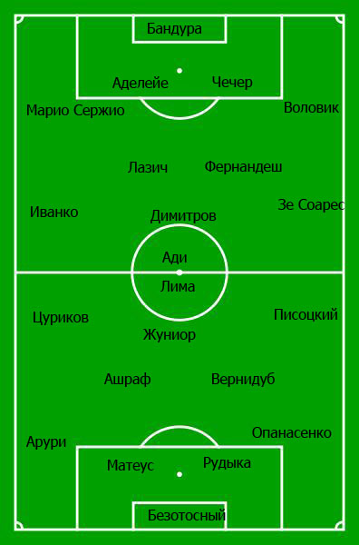 стов: Хайдучек, Рибейро, Джеферсон и Каськов. Также не будет принимать участия в матче и Калонас, который уже подыскивает себе новое место работы. Стартовый состав запорожцев спрогнозировать несложно. По сравнению с поединком против Динамо произойдет минимальное количество изменений. В ворота станет Безотосный. Несмотря на то, что Лутков располагает тремя голкиперами приблизительно одного уровня, именно выход Дмитрия в основе видится наиболее вероятным. Четверка защитников примет следующий вид: на правом фланге будет действовать Опанасенко, в центре сыграют Рудыка и Матеус, а на левой бровке разместится Арури. Роль опорных полузащитников сыграют Ашраф и Вернидуб. Виталий является номинальным защитником, однако с функциями опорника он также справляется достаточно неплохо. Справа в полузащите будет действовать Евгений Писоцкий, а слева – Андрей Цуриков. Под единственным форвардом Лимой расположится Жуниор. Бразилец, хоть и не играл в поединке с Динамо, без сомнения является основным игроков в тактических построениях Луткова.