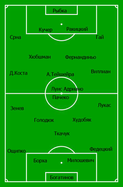 рняка Мирча Луческу вновь прибегнет к ротации. Рискнем предположить, что за опорную зону будут отвечать Фернандиньо и Томаш Хюбшман. Трио атакующих хавов примет следующий вид: на левом фланге разместится Виллиан, на правом – Коста, а в центре – Тейшейра. В связи с травмой Евгения Селезнева конкурентов у Луиса Адриано фактически нет.