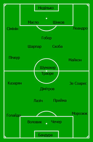 Безперечно зміниться і склад на матч з Металургом у порівнянні з грою проти Шахтаря. Повертається до основи новий капітан Сімінін, який не грав через дискваліфікацію. На правому фланзі оборони грав Шарпар, але сьогодній його варто очікувати в центрі поля поряд зі Скобою (заміна в першому таймі минулого тижня нічого не значить) та іншим новачком Гобером, хоча Кварцяний і не дуже задоволений його грою був. Інший варіант Герасимюк в центрі поля, також сьогодні в запасі вже буде Стевіч, на його бойові здібності тренер покладає великі надії. Попереду поряд з Шумахером і Майконом буде Пічкур, він замінить на правому фланзі Бабиря, що вчора майже всю гру за дубль провів. Хоча звичайно Віталій Кварцяний може і здивувати.