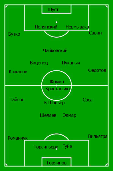 Травмированные: Ищенко, Ярошенко - Обрадович, Фининьо, Валяев