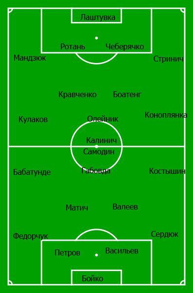 Если Ротань выйдет в центре обороны, то с определением позиций в центре поля и атаке нет никаких проблем. Кравченко сыграет с Боатенгом в опорной зоне, а Кулаков, Олейник и Коноплянка будут помогать единственному форварду Калиничу. Еще один потенциальный игрок основы Матеус все никак не может пережить свои проблемы с задней поверхностью бедра, против Арсенала он вышел на поле и был тут же заменен.