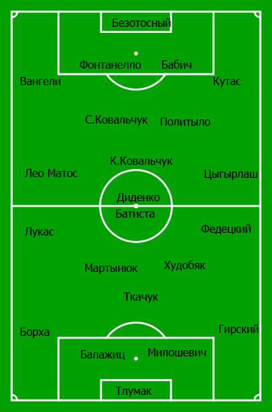 тить все еще отсутствие Бурдужана, лучший бомбардир команды травмирован и вряд ли примет участие в игре. Зато уже в игре бразилец Франса и капитан команды Бабич, оба сегодня если не в старте, то в заявке на игру точно должны попасть. Наверняка по сравнению с последним неудачным матчем команды в Донецке Роман Григорчук пойдет на некоторые изменения в составе.