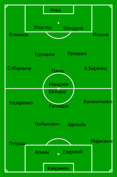 альца. Хотя в матче с Зарей киевляне побелили, изменения ожидаются. В воротах должен сыграть Рева, опытный голкипер уже был в запасе, а его хладнокровие очень надо обороне. Из-за дисквалификации не сыграет автор дубля в ворота Зари Григорий Баранец, формально его заменит Мандзюк, но он сыграет на острие, а из глубины будет действовать Панас.