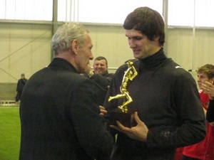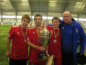 Специальный приз семьи Макаровых достался голкиперу Интеграла Юрию Яковчуку, награду КОФФ легендарный вратарь Валерий Самохин вручил стражу ворот Арсенала Богдану Мельниченко. А вот из рук Владимира Трошкина трофей лучшего игрока турнира получил лидер синявцев Рысенко. А затем играющий тренер Интеграла Сергей Шевченко поднял над головой и понес подопечным-одноклубникам кубок Макарова…