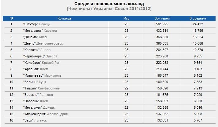 Также рекорд стал возможен благодаря тому, что одновременно играли свои домашние матчи Шахтер, Динамо и харьковский Металлист, которые и составили тройку наших призеров. Стоит отметить и луганскую Зарю, бодрый старт которой во второй части сезона привлек 12 000 болельщиков на трибуны Авангарда.