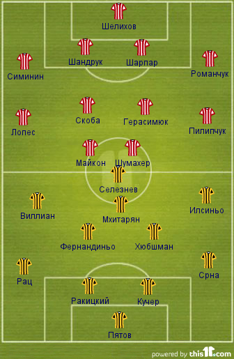 У Шахтера также проблемы с составом имеются. Глупую дисквалификацию заработал Дуглас Коста, пока только бегает Эдуардо, не готов вернуться Чигринский, играющий только за молодежный состав. Зато после двух матчей отсутствия снова в составе капитан Горняков Срна. Бесспорно, он заменит в стартовом составе Кобин, хотя тот с Черноморцем был, как минимум, активен. Дубль Селезнева в игре с Черноморцем абсолютно не значит, что сегодня он снова сыграет с первых минут. За Евгения реализация моментов по сравнению с дикими промахами Луиса Адриано в Мариуполе и украинский паспорт. Может, Мирча Луческу поставит на левый фланг обороны Шевчука или Кобина, вернет в центр полузащиты Гая, тогда шансы Селезнева не столь высоки. Но изначально он должен выходить с первых минут.