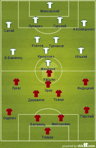 У Сергея Конюшенко много проблем с составом. В прошлом туре с Металлургом наставник Пивоваров не мог рассчитывать на целый ряд игроков, и сейчас ситуация уж точно не улучшилась. Разве только главный форвард Мандзюк отбыл дисквалификацию, а это крайне важный игрок для команды, как показывают весенние игры. Несколько матчей за молодежную команду отыграл Сапай, сегодня он может выйти на своей привычной позиции справа в обороне. Неизвестна ситуация с Сибиряковым, Панасом и Захаревичем, были проблемы у Пластуна, вряд ли готов играть Григорий Баранец. В общем, Конюшенко крайне трудно делать выбор сейчас, проблем просто огромное количество, и не факт, что все они решились до этой встречи.