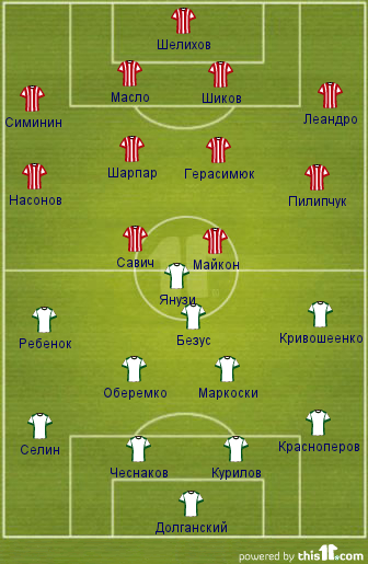Наверняка Демьяненко будет брать за основу тот состав, что играл в прошлом туре. Возвращаются после дисквалификации Масло и Герасимюк, и хотя Приндета с Изворану довольно неплохо их подменяли, первые имеют большую важность в команде, и должны играть. В атаке наверняка изменений не будет пара Савич - Майкон создала все три мяча в Донецке, тогда как остальные форварды не всегда выглядят успешно.