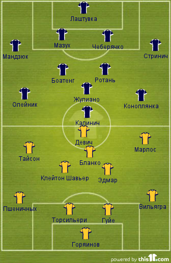 м числе пропустивший игру в Симферополе Лаштувка и не игравший еще в этом году Денисов, могут выйти на поле в этой встрече. Чех так наверняка будет в стартовом составе, на данный момент он основной вратарь днепрян. Линия обороны сейчас довольно стабильный состав имеет, рядом с Ротанем должен сыграть Боатенг, а вот впереди могут быть разные варианты. Неприкасаемым тут выглядит только Коноплянка, даже Калинич в его нынешнем состоянии может оказаться на скамейке запасных, также претенденты на место в старте бывший игрок Металлиста Олейник (напомним, он в матче первого круга даже в запас не попал), Матеус, Жулиано, Шахов. Многое зависит от решения тренера.