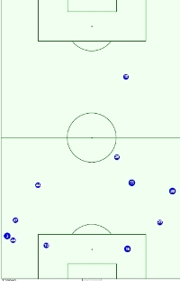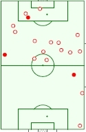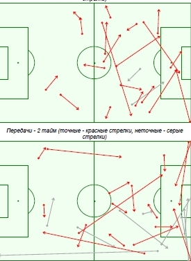 Разумеется, объем работы Флореску Шацких просто не в силах потянуть, особенно это касается оборонительной игры. Зато получилось очень занимательно в плане атаки. Фактически Шацких играл на позиции плеймейкера, и получилось эффективно. На картинке видно, что большую часть своих передач Максим отдавал именно в районе штрафной площади соперника. Также следует отмечать другие цифры: он принял участие во всех четырех голевых атаках соперника, вообще больше половины атак команды (47 из 90) не проходили без его участия - лучший показатель в команде, десять из 14-ти передач в штрафную были точными, как и четыре из пяти острых/обостряющих передач.