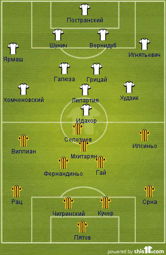 Хозяева будут играть без своего капитана Каменюки, перебравшего желтых карточек. Вместо него на правом фланге может сыграть Хомченовский или Родич. Есть небольшие сомнения, относительно того, кому тренерский штаб доверит место на позиции атакующего хавбека – Липартии либо Ференчаку. В остальном изменений в составе не предвидится.