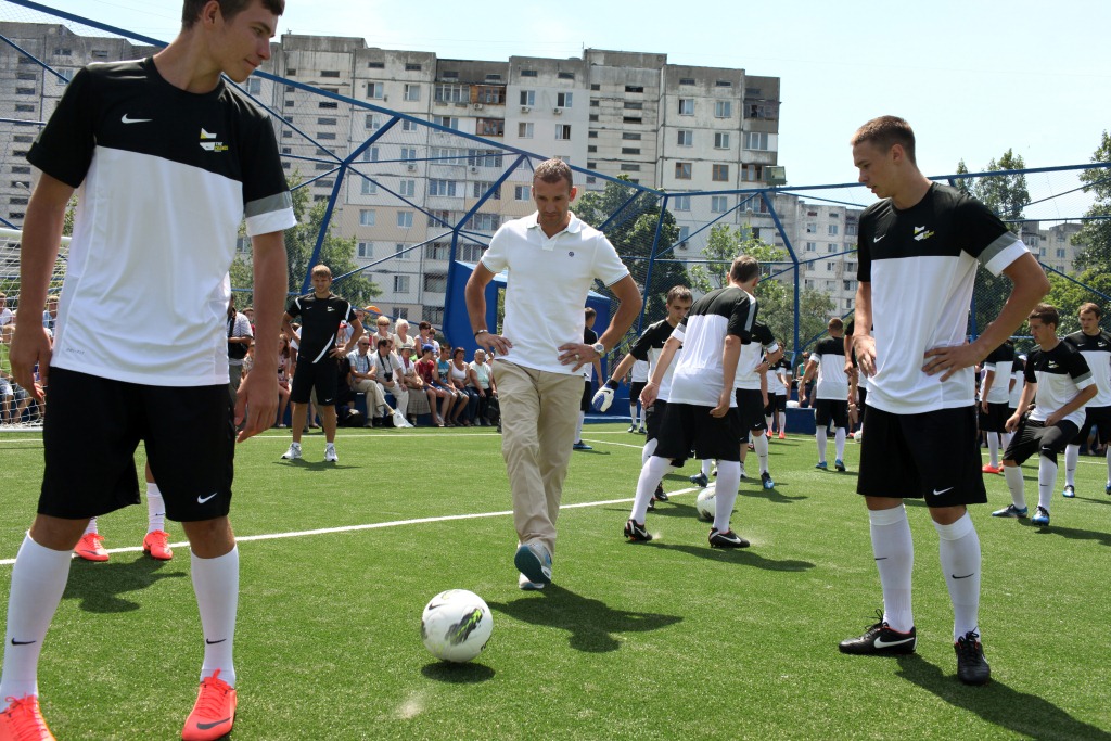 Легендарный украинский футболист Андрей Шевченко вместе с компанией Nike сегодня открыл обновленное футбольное поле и спортивный зал в киевской школе на Оболони, в которой он получал свое среднее образование и начинал осваивать футбольные навыки.