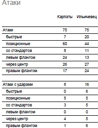 своем активе по 75 атак, но если у Карпат только семь были быстрыми, то у Ильичевца 20. А ведь переход из обороны в атаку до недавних пор был ключевым элементом в игре львовян. Против Ильичевца команда Павла Кучерова ни разу не била по воротам после быстрых атак, тогда как мариупольцы нанесли шесть ударов (в позиционных атаках и после стандартов - по пять). Учитывая развитие событий в матче, этот компонент стал ключевым, Ильичевец добился успеха за счет быстрых атак, тогда как Карпатам явно не хватало скорости в действиях.