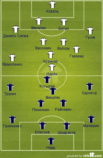 , что противостоял Шахтеру, может, и совсем идентичным. Александр Севидов и рад бы поставить в центр поля опытного игрока, но Валяев уже отбыл в расположение Арсенала, а испанец Хорди Лопес пока не может играть по причинам отсутствия сертификата. Могут быть претензии у Севидова к левому защитнику Гринченко, однако основной игрок на этой позиции Меликян травмирован, и заменить Гринченко некем.