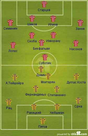 получившего повреждение. Луческу нужно выбирать между Девичем, Селезневым и Эдуардо. Наиболее важная новость это быстрое возвращение Срны, доигрывавшего матч с Кривбассом с травмой. Он уже работал вместе с командой, и наверняка сыграет сегодня с первых минут.