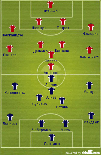 А вот Хуанде Рамос зачастую тасует состав, особенно это касается атакующих хавбеков. На прошлой неделе в запасе даже Коноплянка оказался. В четверг команде стартовать в еврокубках, и наверняка испанский наставник будет рассчитывать силы своих игроков, поэтому кое-кого может оставить в запасе. С другой стороны Ротань, Жулиано и Зозуля в начале сезона в такой форме, что не беречь их напор просто нет смысла. Хотя Рамоса такие вещи не смущали, он может вовлечь в ротацию любого.