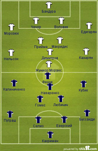 Стартовые составы команд не должны таить в себе никаких сюрпризов. Наконец, эпидемия травм пощадила Металлург, и теперь в лазарете команды остается лишь Шина. Методом проб и ошибок Владимир Пятенко таки нашел исполнителя, способного достойно заменить левого защитника. Им оказался новичок команды Артак Едигарян. Небольшие сомнения есть относительно пары опорных полузащитников. На два вакантных места в старте претендуют сразу три исполнителя: Василий Прийма, Константинос Макридис и Джордже Лазич. Предположим, что на этот раз серб останется в запасе.