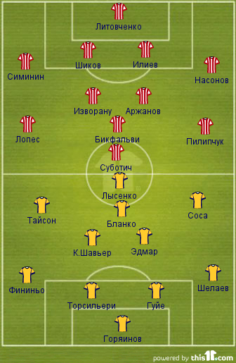 Металлист играет на два фронта, поэтому Мирону Маркевичу приходится тасовать состав. Например, из-за травмы Вильягры Обрадович и Шелаев играют на правом фланге обороны по очереди. В чемпионате предпочтение отдается украинцу. На левом фланге обороны сыграет Фининьо, который был дисквалифицирован на матч Лиги Европы. Также следует ожидать на острие атаки Лысенко (четвертый украинец) и Тайсона, который после непродолжительного отпуска вновь в Металлисте. Традиционно у Маркевича непростая задача правильно выбрать еще одного игрока в состав. Бланко, Марлос и Виллиан не каждый раз играют стабильно. Может, с первых минут выйдет Кристальдо в паре с Лысенко или Торрес, что позволит Шавьеру сыграть ближе к атаке. Тут предугадывать крайне сложно.