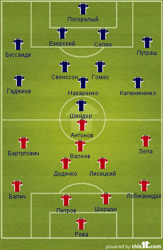 Из-за дисквалификации не сыграет ключевой исполнитель команды Любичич. Его в середине поля может заменить Свенссон или же Назаренко сыграет глубже обычного.