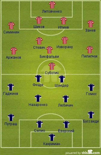 В воротах по-прежнему играет Литовченко, поскольку Старцев травмирован, а Недилько не набрал форму после своей травмы. После отдыха возвращаются в состав ключевые игроки команды Симинин, Шиков, Бикфальви, Суботич. Вряд ли Демьяненко подготовил какие-то неожиданности на этот счет.