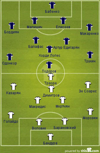 Против Гелиоса неделю назад не играли некоторые исполнители с проблемами, Севидов сразу говорил, что поберег их. Но если травма Мищенко, вероятнее всего, не позволит ему выйти на поле и сегодня, то Одонкор и Печенкин уже должны быть в строю. Похоже, определился наставник ужгородцев с правильным вариантом линии обороны, по крайней мере, уже несколько матчей она остается одной и той же. А на острие должен сыграть опытный болгарин Тодоров. Хотя и Косырин против своей бывшей команды - интересный вариант.