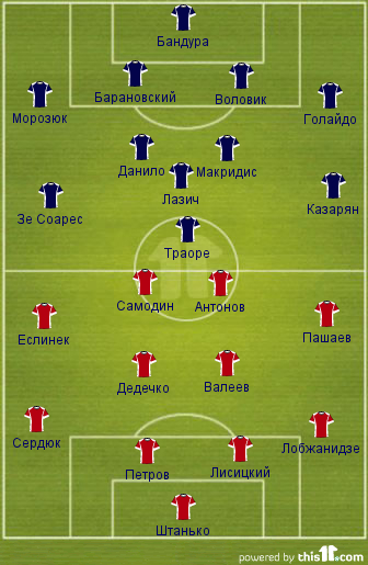 Металлург Д (ориентировочный состав): Бандура – Морозюк, Барановский, Воловик, Голайдо – Мкртчян, Макридис – Зе Соарес, Лазич, Казарян - Траоре