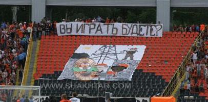 Началось все, как обычно, во время выхода команд на поле. В этот раз было задействовано 9 секторов на северной трибуне. Там и состоялся так называемый парад баннеров. Сначала над секторами одновременно поднялись 5 баннеров, которые болельщики уже использовали раньше на матчах «Шахтера». Вслед за этим последовала своеобразная «акция протеста» от Za boys ultra. На 20 минуте первого тайма ребята покинули 18-й сектор. Вместо себя они оставили лишь баннер с изображением главного тренера в окружении футболистов на фоне шахты и текстовкой «Вы играть будете?».