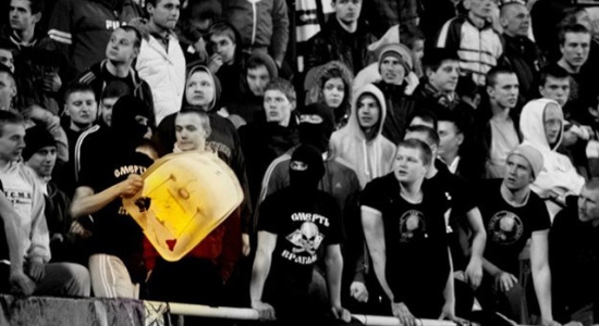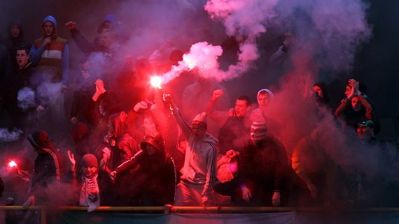 Непосредственно на арене фанаты обеих команд отметились сжиганием атрибутики друг друга, громогласным скандированием нецензурных выражений, а также использованием пиротехники с дальнейшим бросанием зажженных файеров на беговые дорожки и на поле. Один раз судья остановил игру, пока работники стадиона не потушили файер, прилетевший из сектора хозяев, второй раз он чуть было не попал в сотрудников клуба, находившихся внизу. Под конец матча с гостевого