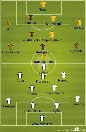 К сегодняшней игре дончане подходят с серьезными кадровыми проблемами в центре обороны. По причине дисквалификации на поле Донбасс Арены не смогут выйти два основных защитника Александр Кучер и Ярослав Ракицкий. Таким образом, шанс проявить себя будет предоставлен молодому Сергею Кривцову и постепенно набирающему форму Дмитрию Чигринскому. Остальные исполнители подходят к матчу в оптимальной форме (за исключением Испаили), так что изменений в составе по сравнению с матчем против Днепра должно быть минимальное количество. Вполне возможно, в рамку ворот вернется опытный Андрей Пятов. Все-таки Антон Каниболоцкий весной уже неоднократно допускал непростительные ошибки.