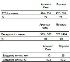 Передачи (точные): Шахтер — 635 (563), Арсенал — 583 (500),