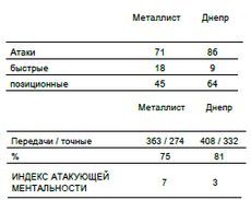 Что немаловажно, хозяева эффективнее действовали в завершающей фазе атаки, больше и точнее били (14/8 против 12/4), отдали больше обостряющих и острых передач (12 точных из 25-ти у Металлиста и 12/6 у Днепра).