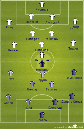 Олег Блохин после неудачного матча с Волынью имеет все основания сделать изменения в составе. Кроме того, нужно вводить в состав новичков, чтобы они набирали форму и вписывались в командную игру. Исходя из этого, делать предположения относительно сегодняшней основы Динамо непросто. Наверняка с первых минут вновь сыграет Мбокани, а вот относительно Ленса и Бельханда спешить не стоит, они оба, как показал матч первого тура, далеки от идеальной формы. Наверняка с первых минут будет использован вариант с Дуду и Аруной, давни