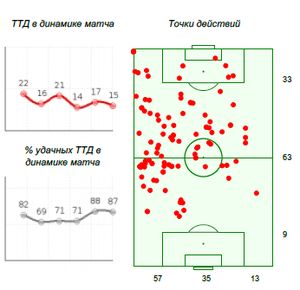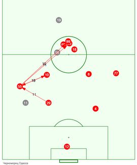 Забавно, но выход Андерсона на поле автоматически отразился на игре команды. Возможно, это и не было сильно заметно на поле, однако Сантана не только чаще других получал передачи от партнеров по обороне, ему пасовали даже чаще, чем центрхаву Ковальчуку, через которого обычно строится игра Черноморца! Обратите внимание также на общее распределение передач хозяев — графика приведена рядом.