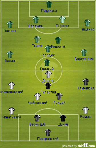 У Юрия Вернидуба нет особых мотивов менять состав своей команды после удачных последних матчей. По-прежнему травмирован Гордиенко, на правом фланге обороны вновь ожидается появление Ярмаша. В остальном состав команды стабильный и сыгранный, сейчас игрокам крайне трудно пробиться в стартовый состав, поэтому такие исполнители как Галюха, Любенович, Боли или Сантини вынуждены сидеть в запасе.