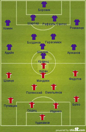 В основу по сравнению с прошлым матчем следует ждать возвращения Боровика, Богданова, возможно, Адийи. Главная проблема у Арсенала с центром обороны, там постоянно играют разные сочетания и возникают ошибки. В прошлом туре неплохо сыграл в защите Шарпар, сегодня он наверняка будет первым выбором на эту позицию, его партнерами могут быть Рафаэль Сантос и Петров, которые в последнее время запомнились разве только заработанными в свои ворота пенальти.
