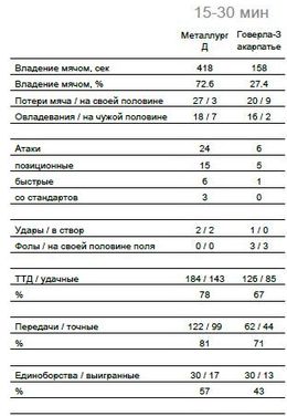 Удары (в створ): Металлург З — 20 (4), Ворскла — 18 (9)... Карпаты — 5 (4), Черноморец — 5 (1).