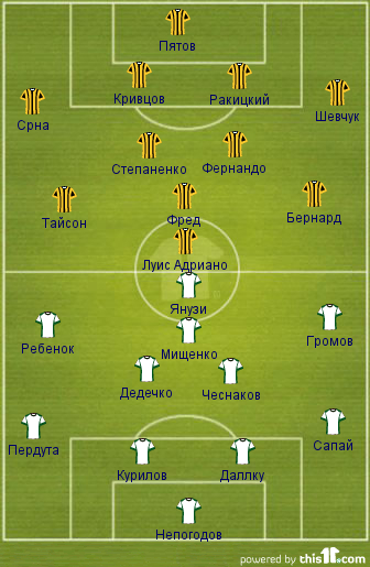 Что же касается предполагаемого состава Шахтера, то здесь возможны варианты. Скорее всего, Луческу даст возможность отдохнуть ряду основных игроков своей команды после изнурительной поездки в Сан-Себастьян. Тренеру есть, среди кого выбирать. Однако уже сейчас можно сказать, что Чигринский, Исмаили и Воловик, которые вчера сыграли в составе дубля, наверняка, не выйдут на поле. Так что вполне традиционный вид линии обороны может разбавить разве что Кривцов. А вот кто сыграет в средней линии, остается загадкой. Рискнем предположить, что Луческу продолжит наигрывать на позиции опорного полузащитника Фернандо, который произвел положительное впечатление в Испании. Скорее всего, претерпит изменений и трио атакующих хавбеков. Высока вероятность появления на поле с первых минут Бернарда, которому наставник постепенно предоставляет игровую практику. А