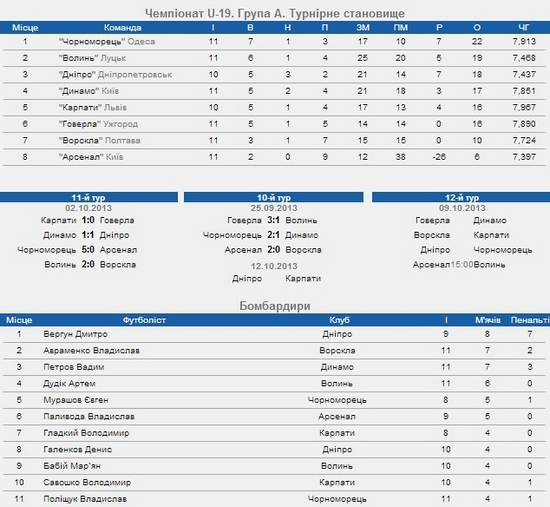 За три тура до окончания ситуация в группе А следующая. Полностью шансы потерял лишь киевский Арсенал. Чисто теоретические шансы остались у полтавской Ворсклы, к тому же у них сложный календарь (Карпаты, Динамо, Черноморец). Спокойно может чувствовать себя Черноморец, имея отрыв от пятого места в шесть очков. А вот команды со второго по шестое место будут бороться за путевки изо всех сил. Самые лучшие шансы у Днепра, который помимо двух домашних матчей имеет в запасе домашнюю игру с Карпатами, которая состоится 12 октября.