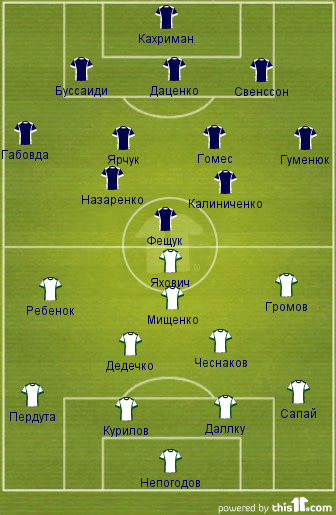 Яннис Христопулос накануне сегодняшней игры встретился с новыми кадровыми проблемами. Точно неизвестно, смогут ли выйти на поле пропускавшие матч с Карпатами Назаренко и Фещук. Кроме того, дисквалификацию заработал Любичич. Если первые двое не сыграют, то Христопулосу вновь придется крутить-вертеть игроков по разным позициям. Во Львове игравший в предыдущих матчах правого латераля Габовда сыграл на позиции нападающего.