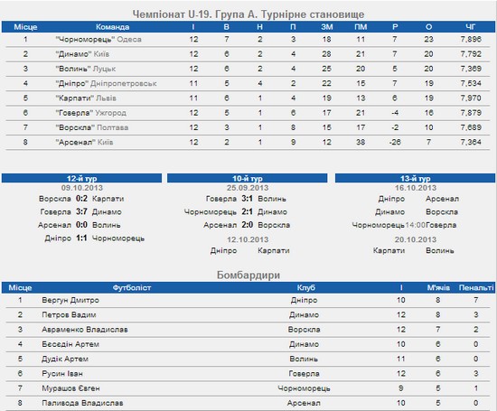 Потерями очков лидирующей группой команд воспользовалось киевское Динамо. Подопечные Алексея Герасименко разгромили на выезде ужгородскую Говерлу. Хет-трик на свой счет записал Артем Беседин у которого таким образом стало шесть забитых мячей (плюс еще два в турнире молодежных команд).