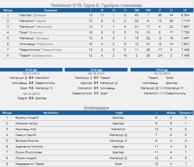 В группе Б Донецкий Шахтер на этой неделе сыграл два матча и оба прогнозируемо легко выиграл. Сначала подопечные Валерия Кривенцова в пропущенном матче 11-го тура на выезде разгромили симферопольскую Таврию (4:0), а потом дома не оставили и "мокрого места" от земляков из Металлурга (5:0). По дублю на свой счет записали Адаменко, Иванов и Борячук. Горняки все свои проблемы не только с попаданием в четверку, но и с первым местом уже давно решили и ведуь борьбу только сами с собой и своей средней результативностью. На данный момент она — 3,5 мяча за игру.