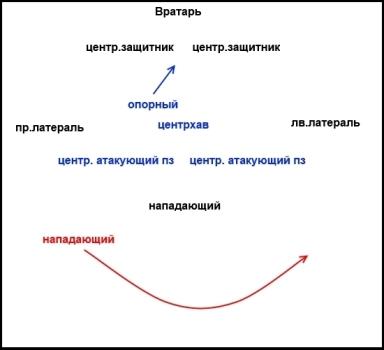 Суть здесь в том, что все игроки из молодежки, на которых рассчитывал тренер (а значит, это те, кто соответствовал уровню) номинально были представителями центрального плацдарма. Соответственно Христопулосу, чтобы уменьшить представительство молодежи в команде, нужно было подбирать тактическую схему с наименьшим количеством игроков цента полузащиты. Он же сделал все наоборот – насытил центр. На фото эти позиции выделены синим цветом. Поэтому пришлось полноценно использовать всех более-менее вменяемых дублеров – Павленко, Приходного, Ярчука. К тому же травма Селио и не восстановившийся Свенссон заставили Христопулоса ставить в центр защиты Даценко.