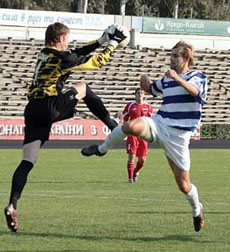 Во втором тайме "Днестр" доказал, что нокаутом в матче и не пахло. Овидиопольцы понеслись огромными силами вперед отыгрываться. Дирижировал действиями партнеров Згура, а самым опасным был высоченный Чернов (экс-"Черноморец", "Карпаты", "Арсенал"), который вызывал панику в штрафной противника при стандартах.