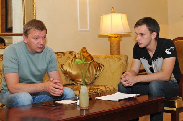 Сергей Палкин назначил интервью в холле гостиницы Опера. Здесь на нескольких диванчиках отельного вестибюля сейчас фактически расположился офис Шахтера. Часть футболистов также живут тут, часть — уже сняли себе квартиры.
