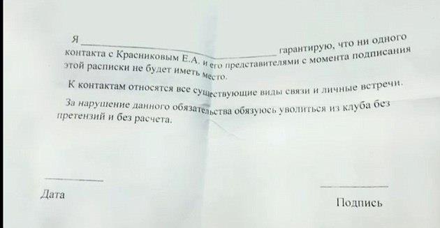 Среди прочего в ходе беседы был затронут вопрос о бывшем спортивном директоре ФК Металлист Евгении Красникове. К сожалению, Спортивный арбитражный суд и Федеральный суд Швейцарии оставили в силе решение Федерации футбола Украины против бывшего директора. В связи с этим, президентом клуба была высказана просьба-пожелание завершить формальные контакты и свести к минимуму, а лучше также прекратить, частные связи с господином Красниковым, поскольку любое общение с ним может быть расценено как нарушение, и связано с риском применения санкций УЕФА в отношении клуба".