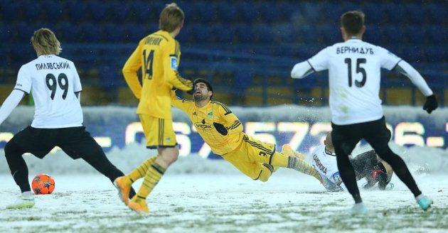 Не сказать, что зима в этот раз пришла в Украину неожиданно, но кое-кто в футболе оказался не совсем готов к такому развитию событий. Да и вообще мороз и снегопады не лучшим образом влияют на футбол. Больше всего досталось встрече Волыни и Ильичевца на днепропетровском Метеоре. Такое впечатление, что снег с поля стали убирать только после прибытия участников матча на стадион, не было видно нормальной разметки на снегу, не нашлось даже мяча подходящего цвета.