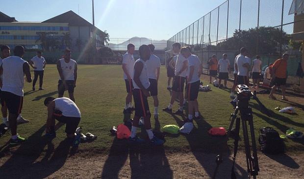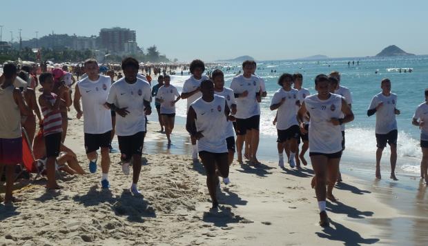 Второй день пребывания Шахтера в Бразилии начался с тренировки на пляже. Команда собралась в холле отеля, выйдя из него, перешла через дорогу и спустилась на песок. Бразильские журналисты заранее знали о готовящемся мероприятии, и дожидались в тени под пальмами напротив входа в отель, а потом рванули за игроками. Удалось увидеть корреспондентов от всех ведущих телеканалов Бразилии – от Globo до спортивного ESPN.