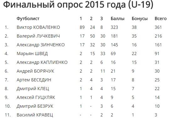 Стоит отметить, что сразу 89 опрошенных отдали пальму первенства Коваленко, который летом стал лучшим бомбардиром молодежного чемпионата мира, а осенью — постоянным игроком ротации Шахтера.