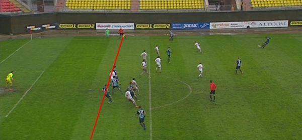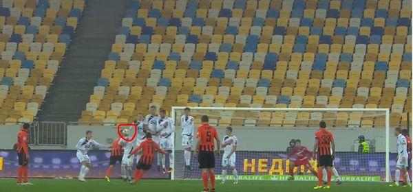 Рисунок 2 Игра рукой футболиста Черноморца, стоящего в стенке