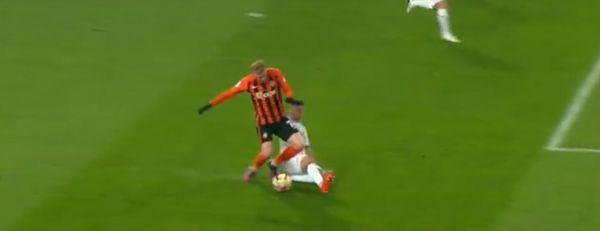 С соответствующего ракурса видно, что Коваленко начал подгибать ноги еще до столкновения с защитником, имитируя удар по опорной ноге. Повторы не позволяют утверждать, было ли вообще касание или падение – исключительная инициатива горняка. За похожее творчество в матче Александрия — Динамо Ярмоленко заработал желтую карточку.